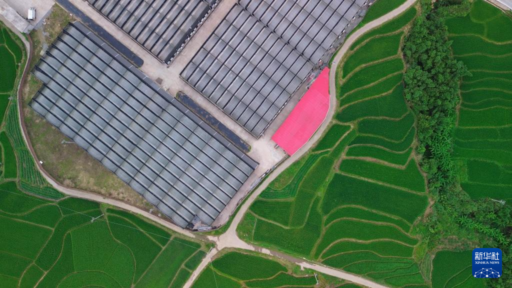 这是8月9日拍摄的由矿区改造的龙岩市永定区龙潭镇蝴蝶兰基地(无人机照片)。新华社记者 陈为 摄