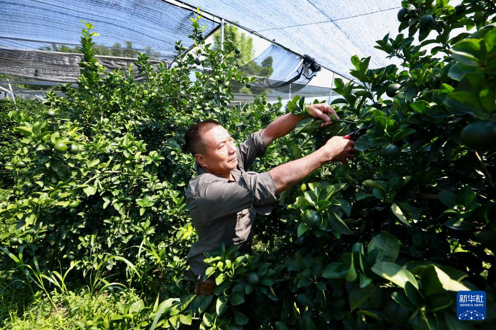 8月12日,福建南平市延平区炉下镇斜溪村果农王崇年在护理果园。新华社记者 姜克红 摄