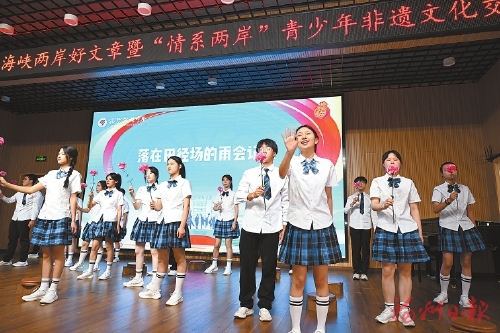 一篇好文章,牵动两岸情。13日上午,海峡两岸好文章暨“情系两岸”青少年非遗文化交流活动在福州民族中学拉开帷幕,来自海峡两岸的200余名青年携手互学互鉴,沉浸式体验传统文化魅力,共赴一场非遗文化之旅。