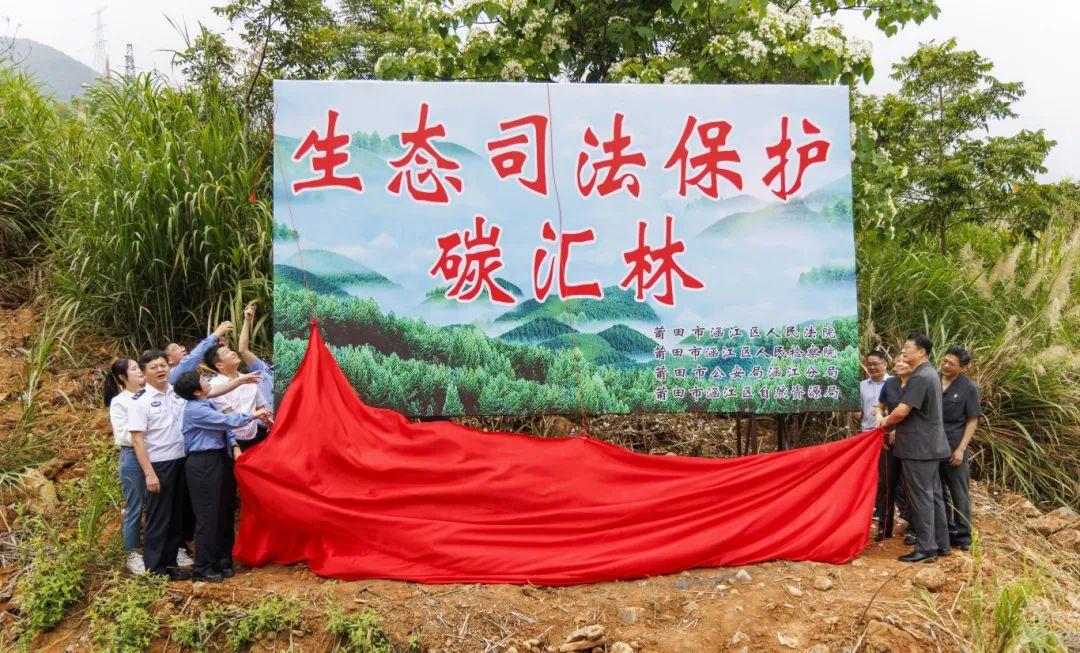 今年4月,莆田首个“生态司法保护碳汇林”在涵江区萩芦镇崇联村揭牌。作为林地补种、森林保护、水资源保护、碳汇教育的载体,“碳汇林”主要针对现阶段无法或无需进行原地补植复绿的案件,开展定点异地补植复绿工作,责令负有生态环境修复义务的当事人从事修复劳动,缴纳生态修复金或惩罚性赔偿金,形成“刑事+修复”保护治理新模式,实现惩治犯罪和修复生态双赢。