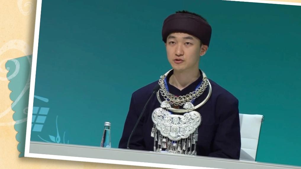 2023年,在第28届联合国气候变化大会上,一位身穿苗族传统服饰,用一口流利的英语分享生态保护观点的中国青年引起大家的关注。他就是来自贵州省凯里市的“95后”苗族小伙谢宗旭。