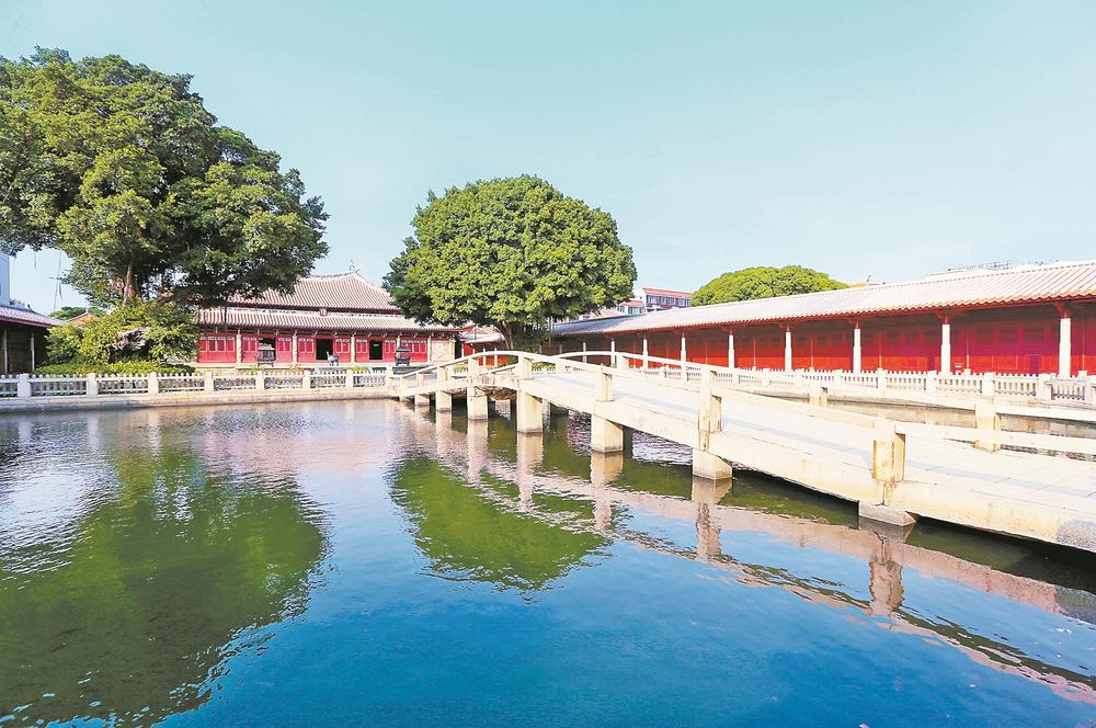 看红砖建筑,必去泉州府文庙打卡。泉州府文庙整体建筑群在建筑的形制、风格及其营建方法上基本承袭了闽南传统,其红砖、红瓦、坡屋顶、燕尾脊极具泉州传统建筑特色,是宋代以来中原文化和闽南古建筑艺术的有机结合,成为闽系红砖建筑文化的典型代表。