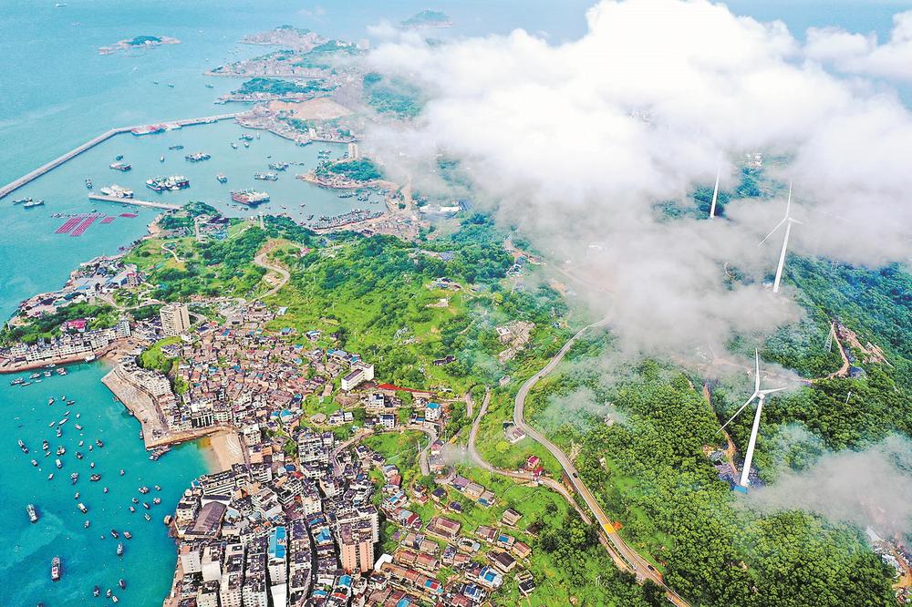 16日,位于连江县黄岐半岛的风电机组在云雾中随风转动,源源不断输送绿色能源。近年来,连江县坚持绿色发展理念,充分依托沿海丰富的风能资源,加大金融财税对发展绿色能源的支持,培育壮大风能产业链,推动能源绿色低碳转型,实现经济效益与生态效益双赢。(王旺旺 摄)
