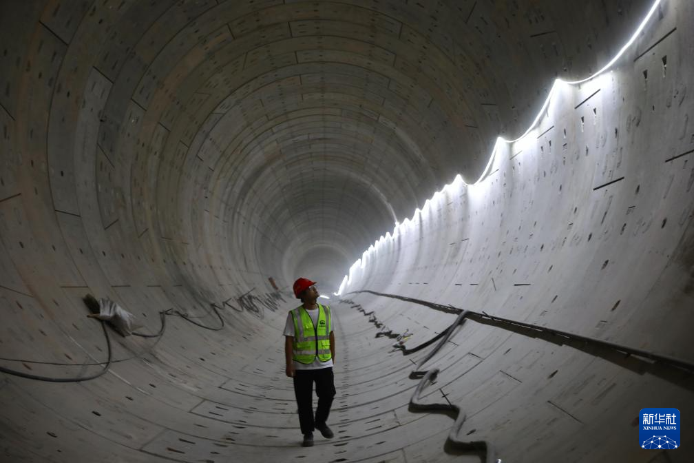 8月21日,中铁上海局城建分公司工作人员在福州滨海快线福州火车站至东门站区间左线隧道内巡查。新华社记者 姜克红 摄