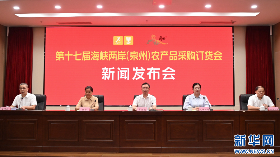 8月23日,第十七届海峡两岸(泉州)农产品采购订货会新闻发布会在南安举办。这是发布会现场。新华网发(主办方供图)