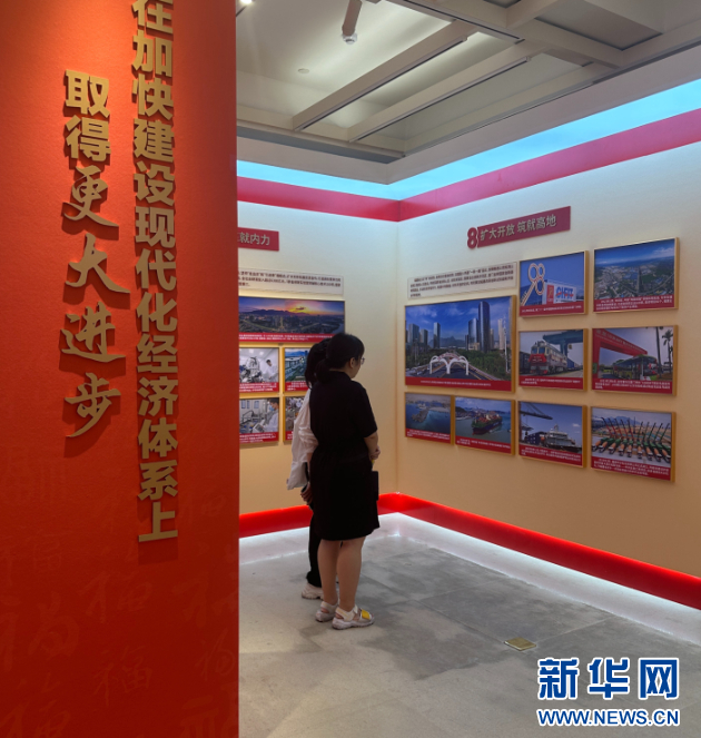 嘉宾在主题成就展前驻足观看。新华网 袁羽 摄
