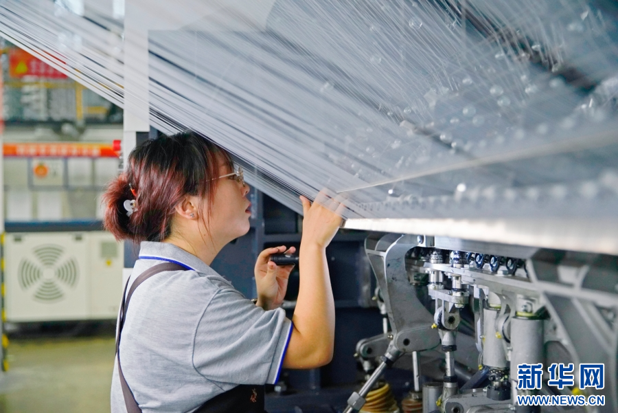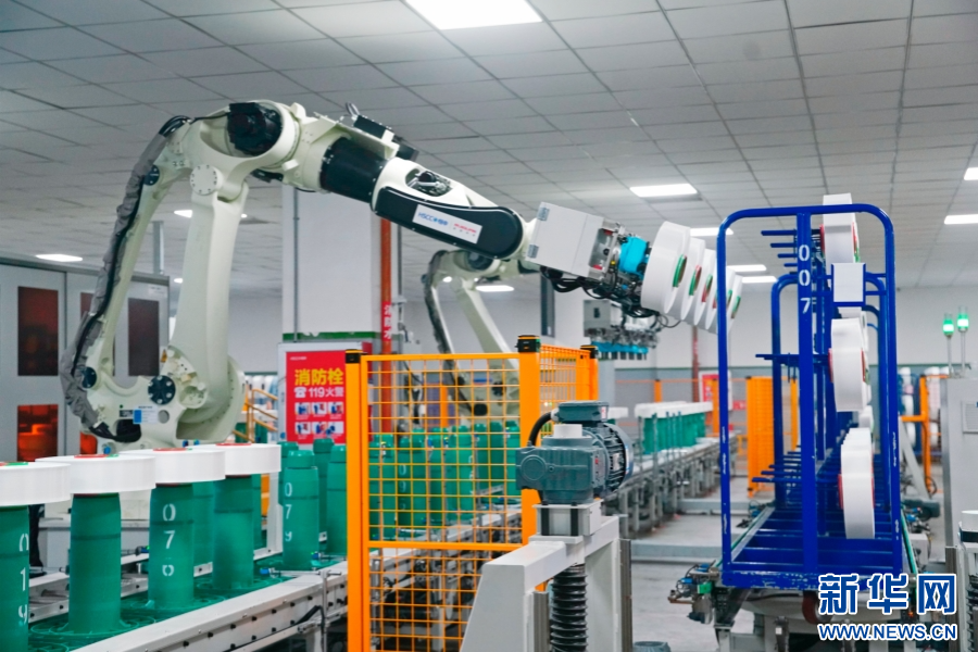 福建省恒申合纤科技有限公司的数智化工厂内,智能制造已延伸到卷绕、质检、包装等各个环节。新华网 蒋巧玲 摄