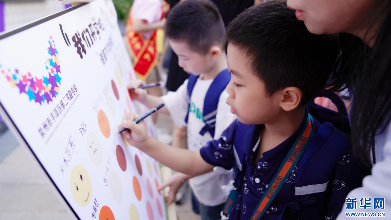 萌娃入学,喜悦之情溢于言表。新华网发(林楷煜 摄)