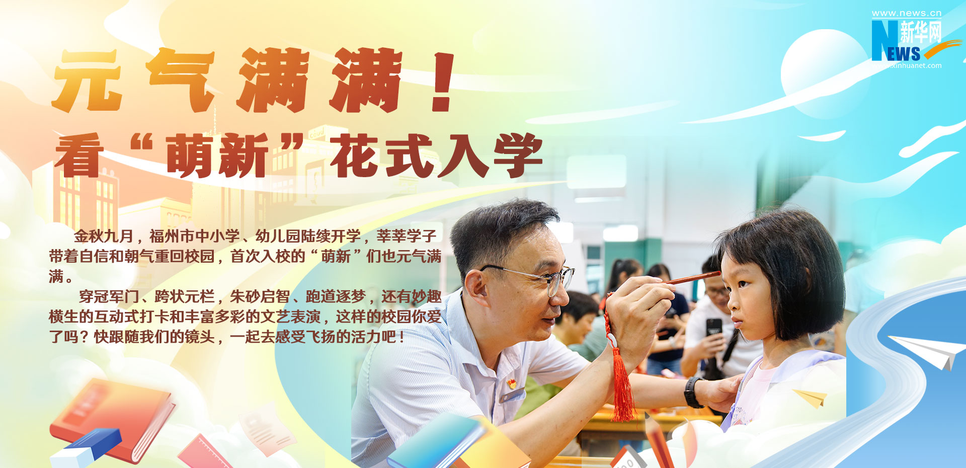 金秋九月,福州市中小学陆续开学,莘莘学子带着自信和朝气重回校园,首次入校的“萌新”们也元气满满。穿冠军门、跨状元栏,朱砂启智、跑道逐梦,还有妙趣横生的互动式打卡和丰富多彩的文艺表演,这样的校园你爱了吗?点击下方图片,跟随我们的镜头,一起去感受飞扬的活力吧!