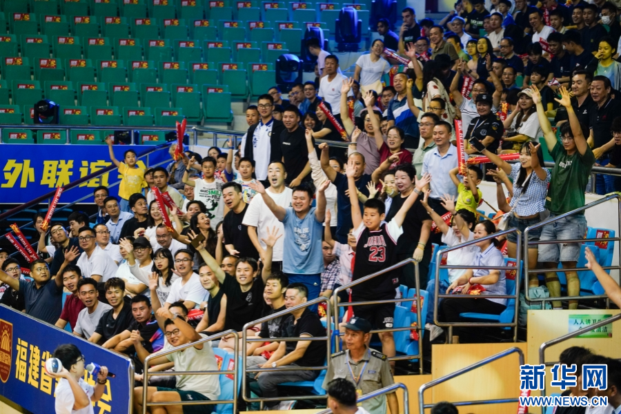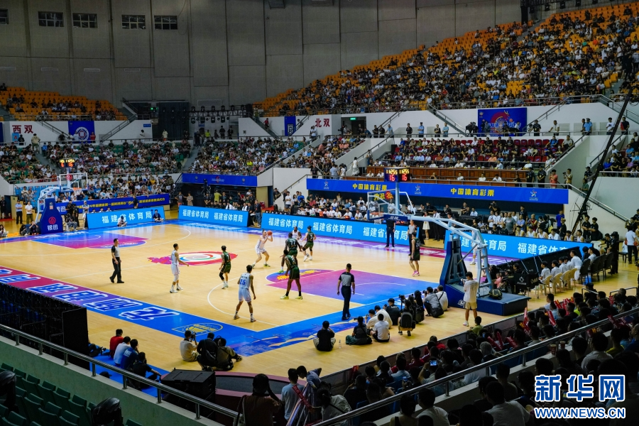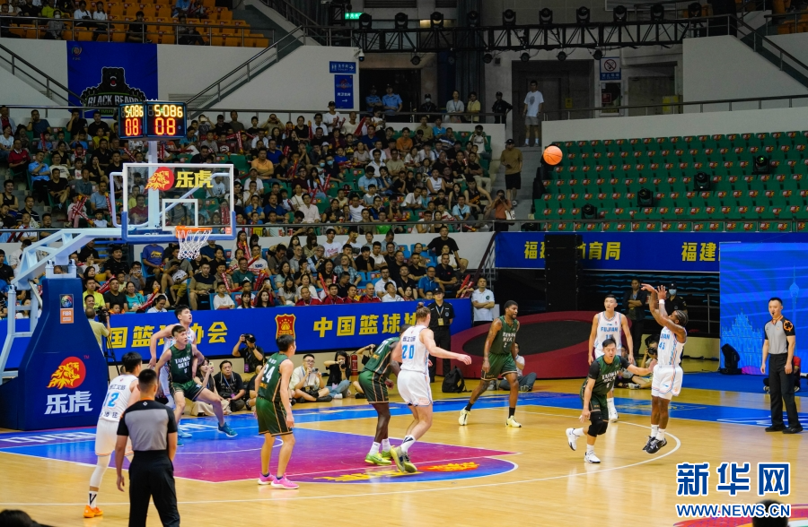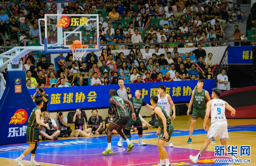 福建省第一届闽港澳台“同心杯”篮球邀请赛开幕,揭幕战由福建晋江文旅篮球队对阵台湾啤酒篮球队。新华网 蒋巧玲 摄