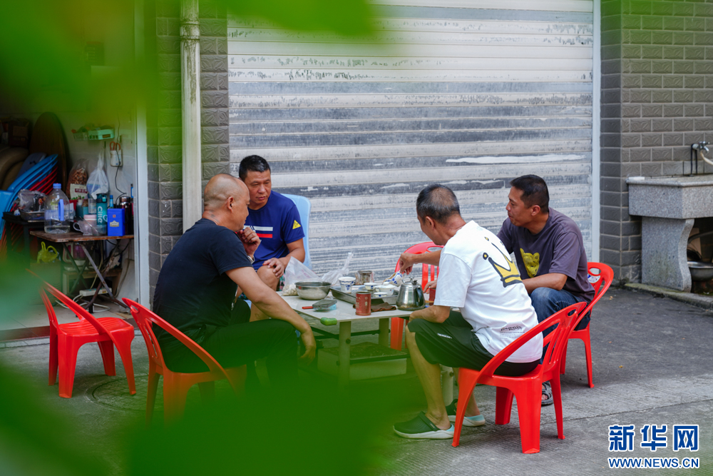 9月1日,三明市三元区小蕉村,村民在自家小院外喝茶聊天。新华网 肖和勇 摄