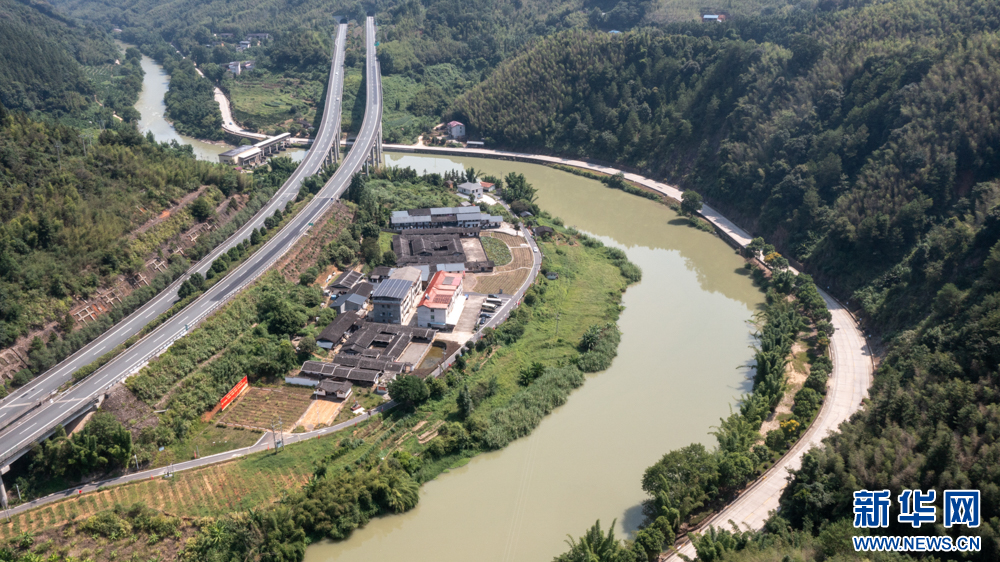 三明市永安市燕西街道上吉山村,文川溪绕村而过,风光秀美(9月2日摄,无人机照片)。新华网 肖和勇 摄