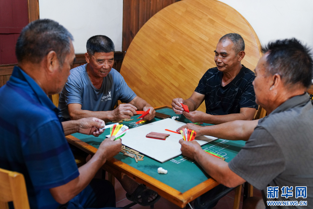 9月1日,三明市三元区小蕉村,老人们在幸福院打牌。新华网 肖和勇 摄