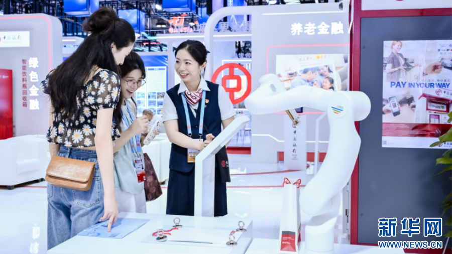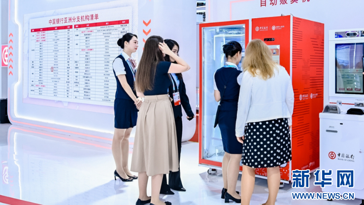 国内外宾客在中国银行展馆内体验数字人民币自动贩卖机,感受数字金融发展成果。新华网发(厦门中行供图)