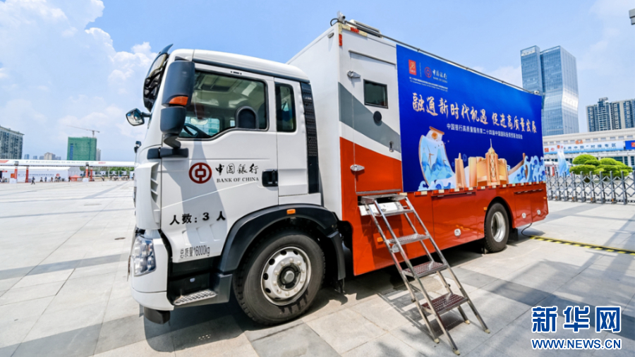 中国银行在主会场外配置移动金融服务保障车,支持办理外币兑换、现金存取、零钱包兑换等多种金融业务。新华网发(厦门中行供图)
