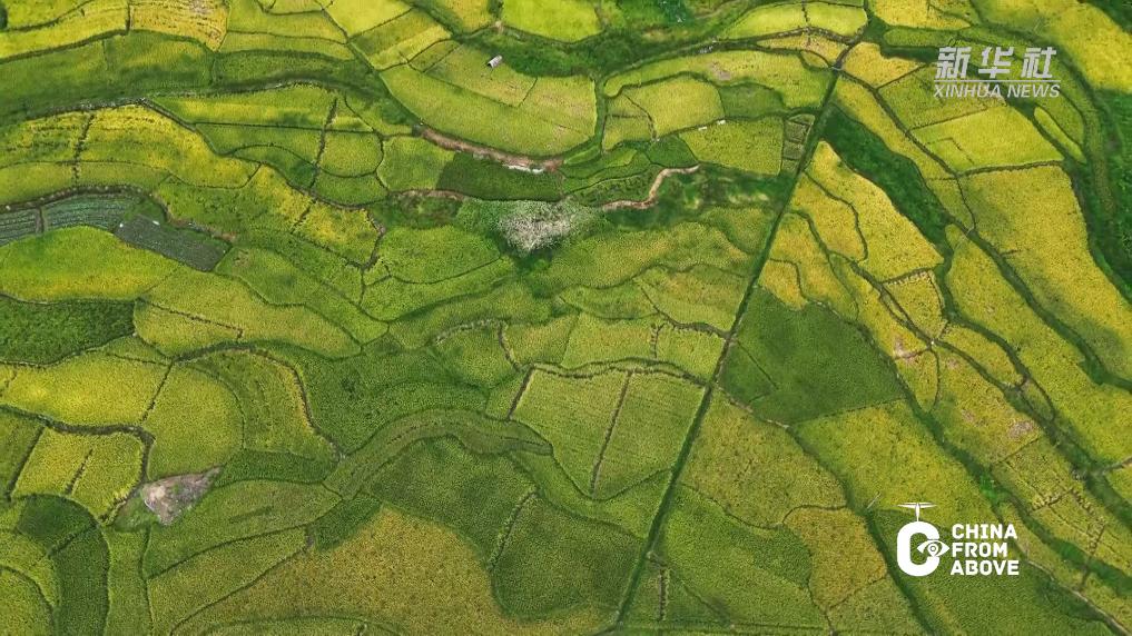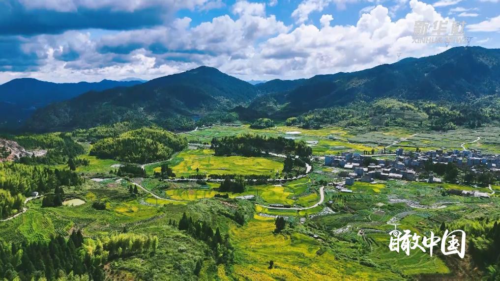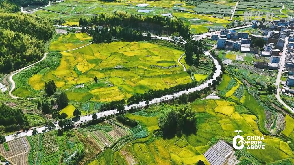 初秋时节,走进福建省宁德市寿宁县大安乡大熟村,映入眼帘的是一片渐黄的稻田。稻田轻铺于广袤的天地间,每一行每一列,仿佛蕴含着生命的韵律与自然的哲思。微风拂过,稻田泛起层层细腻的波纹,宛如金色海浪,美不胜收。