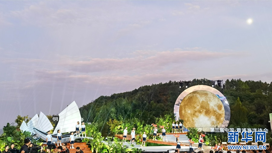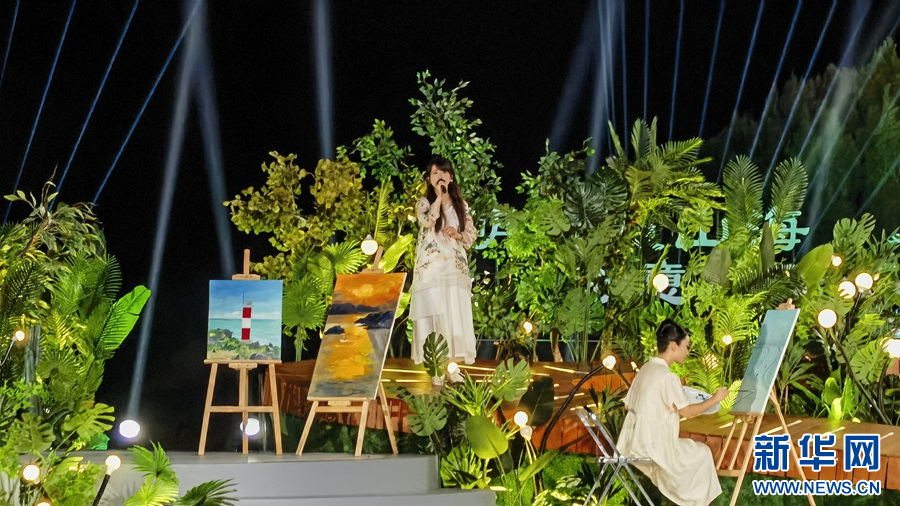 演出融合音舞诗画、诗歌朗诵、海洋诗话等形式,实现诗歌与音乐、与海洋的浪漫碰撞。新华网 刘丰 摄