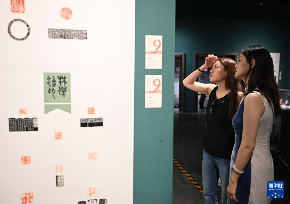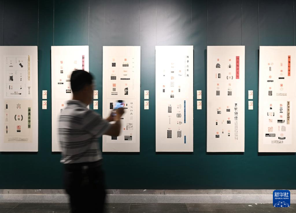 9月20日,观众在第九届海峡两岸中青年篆刻作品展现场参观。新华社记者 林善传 摄