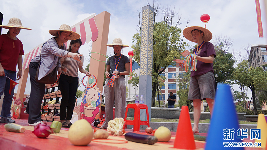 市民游客体验趣味活动。新华网发(林楷煜 摄)
