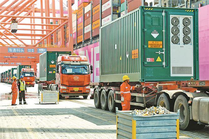 前日上午,一批新型储能集装箱陆续抵达厦门港海通码头,在桥吊与现场工作人员的通力协作下,重达35吨的储能集装箱先后“登船”,第二天它们就离开码头发往英国南安普顿。“从以往在堆场放两到三天才能安排上船,到如今从厂房出发‘两点一线’可直达码头装载,在厦门海事局的协助下,储能集装箱物流安全升级、通关流程优化,运营投入上的降本增效,为企业带来实实在在的发展红利。”海通码头现场管理人员陈浩毅说。