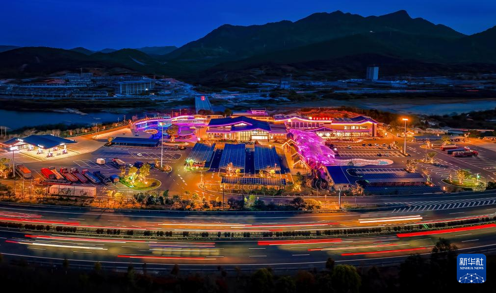 这是青云山服务区夜景(无人机照片)。(叶晓峰 摄)