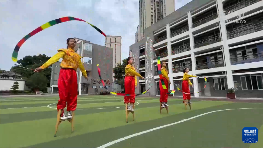 近年来,洪塘高跷舞进入校园,传统文化正焕发出新的光彩。
