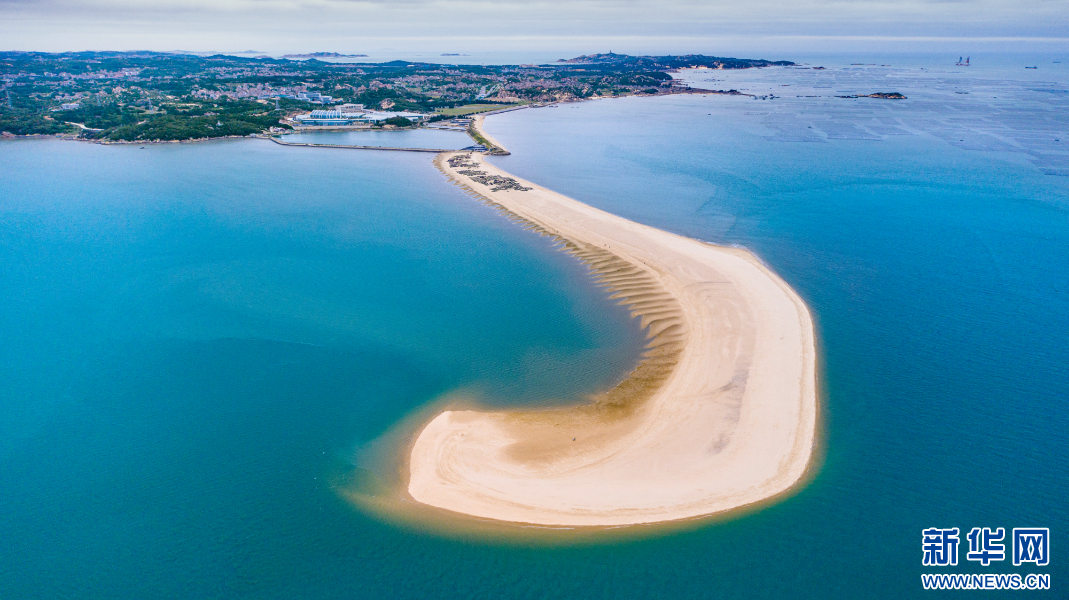 从高空俯瞰,镶嵌在碧海蓝天里的象鼻湾美不胜收。(念望舒 摄)