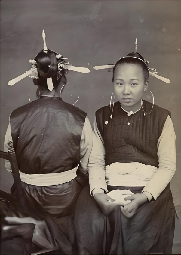 老照片中福州女子头簪“三条簪”的形象。(资料图)
