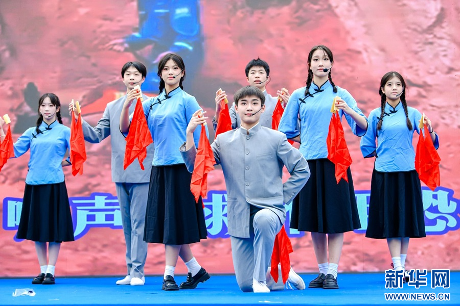 闽江师专的学生表演生动有趣的福州话快板《闽艺说震》。 新华网发(主办方供图)