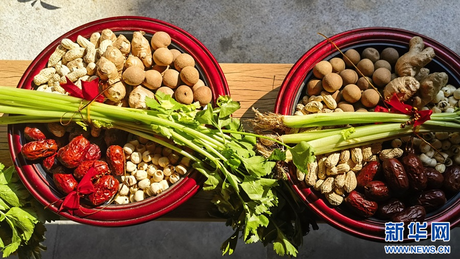 古代学生与老师初次见面时,会奉赠礼物,表示敬意,名曰“束脩”。在建安书院,学子代表效仿古人向老师献上束脩六礼,分别是莲子、芹菜、花生、红枣、桂圆、生姜。新华网 刘丰 摄