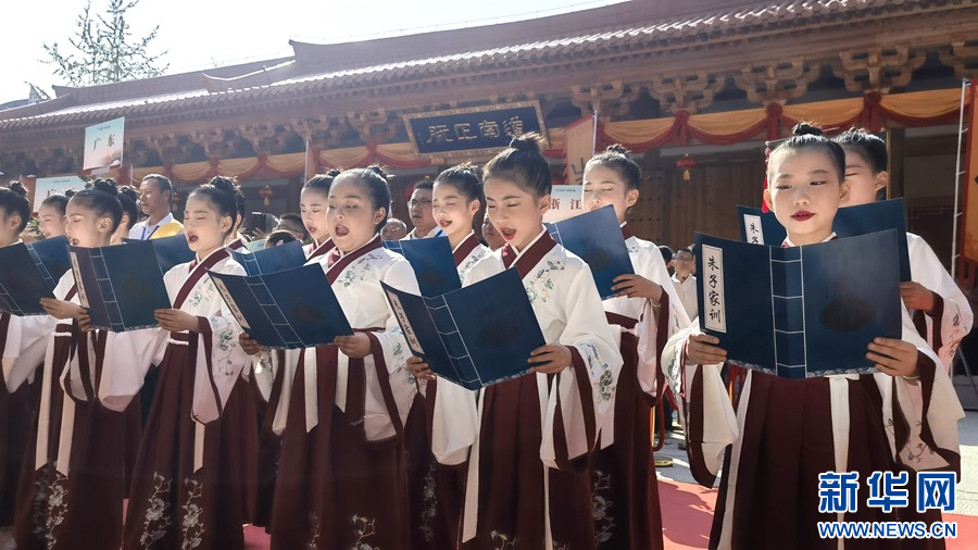 今天的建瓯,朱子文化已浸润千家万户。图为建瓯学生代表诵读《朱子家训》。新华网 刘丰 摄