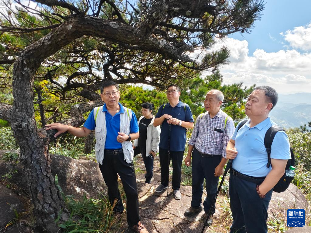 10月18日,专家学者在福建戴云山国家级自然保护区考察黄山松群落。新华社记者 姜克红 摄