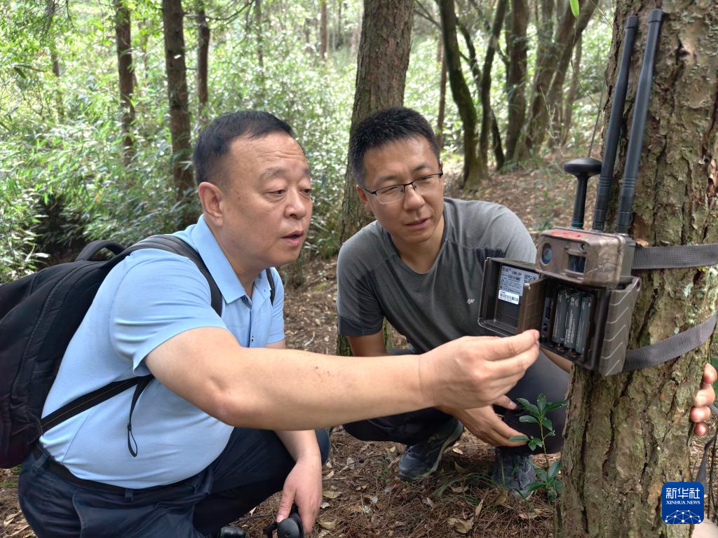 10月18日,专家学者在福建戴云山国家级自然保护区进行生态科考活动时安装红外线照相机。新华社记者 姜克红 摄