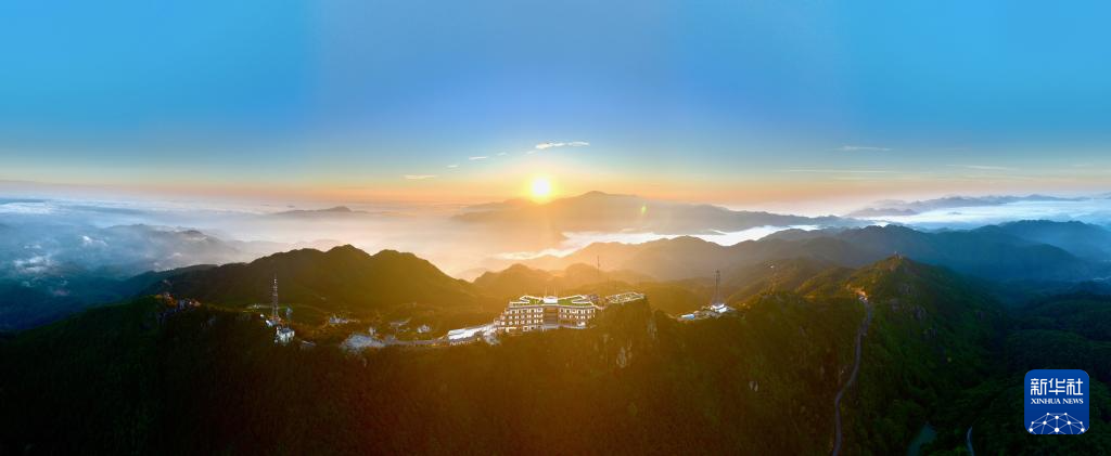 这是10月18日拍摄的福建戴云山国家级自然保护区日出景观(无人机全景照片)。