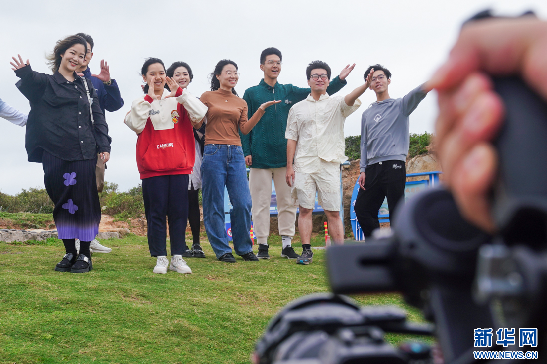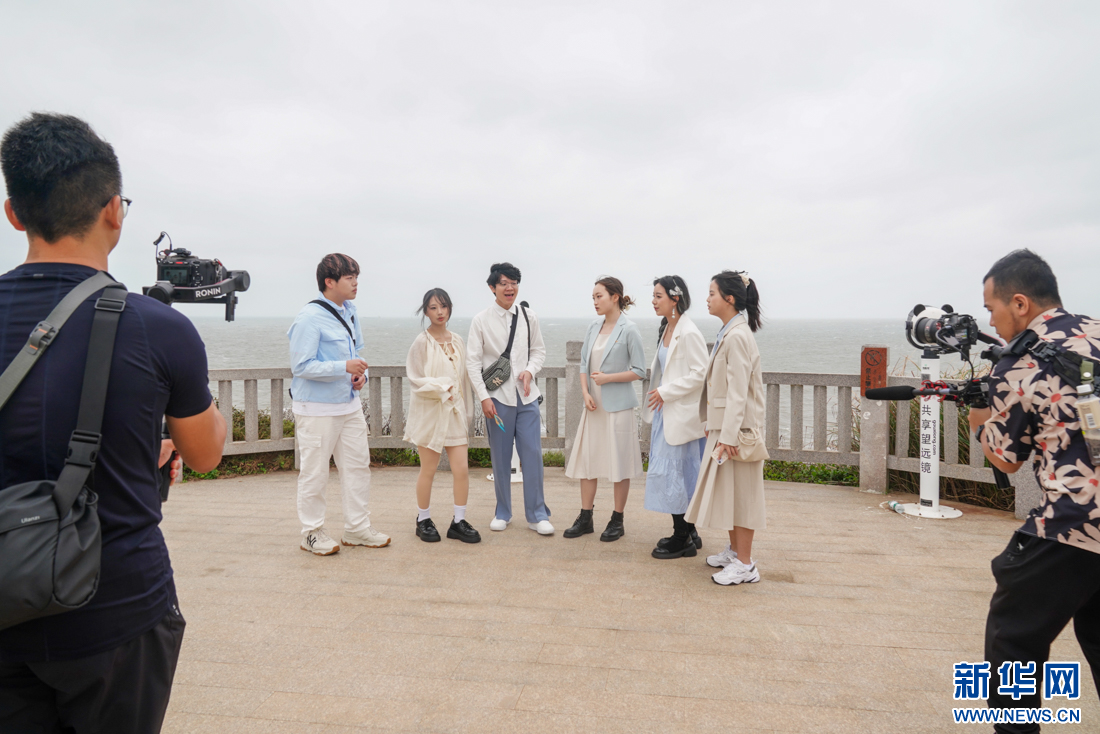 高校乐团在平潭仙人井景区录制主题阿卡贝拉Vlog。新华网 肖和勇 摄