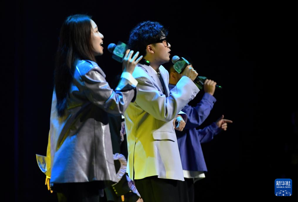 10月19日,在平潭国际演艺中心,平潭九节人声清唱团在现场演唱。新华社记者 魏培全 摄