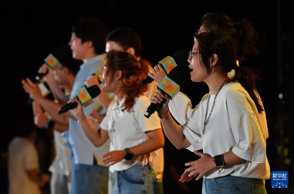 10月19日,在平潭龙王头海洋公园,华北电力大学人声乐团在现场演唱。新华社记者 魏培全 摄