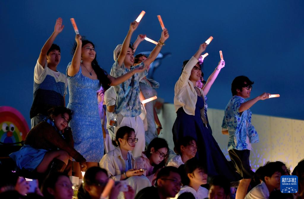 10月19日,在平潭龙王头海洋公园,现场观众为在活动上演唱的高校学子助兴。新华社记者 魏培全 摄