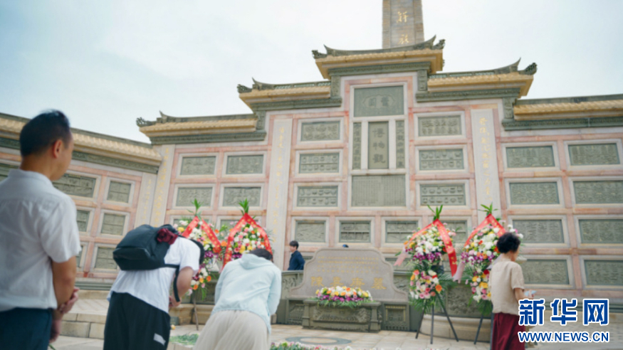 10月21日,全国侨联系统和海外侨胞在厦门市集美鳌园,向陈嘉庚先生陵园敬献花篮。这是参与人员正向陈嘉庚墓行三鞠躬礼。新华网 刘默涵 摄