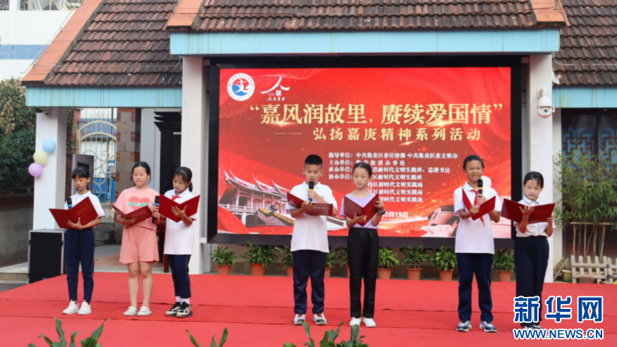 10月19日下午,在厦门市集美区集美街道办事处主办的“嘉风润故里,赓续爱国情”弘扬嘉庚精神系列活动上,孩子们朗诵诗歌《天上有颗嘉庚星》。新华网发(集美区新时代文明实践中心供图)