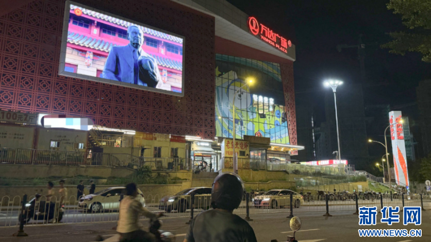珠海万达商业管理集团在全国重点城市精心挑选了200块LED大屏,循环播放“纪念陈嘉庚先生诞辰150周年”纪录片。这是10月21日晚拍摄到的厦门灌口万达广场户外大屏。新华网发(吴燕琴 供图)