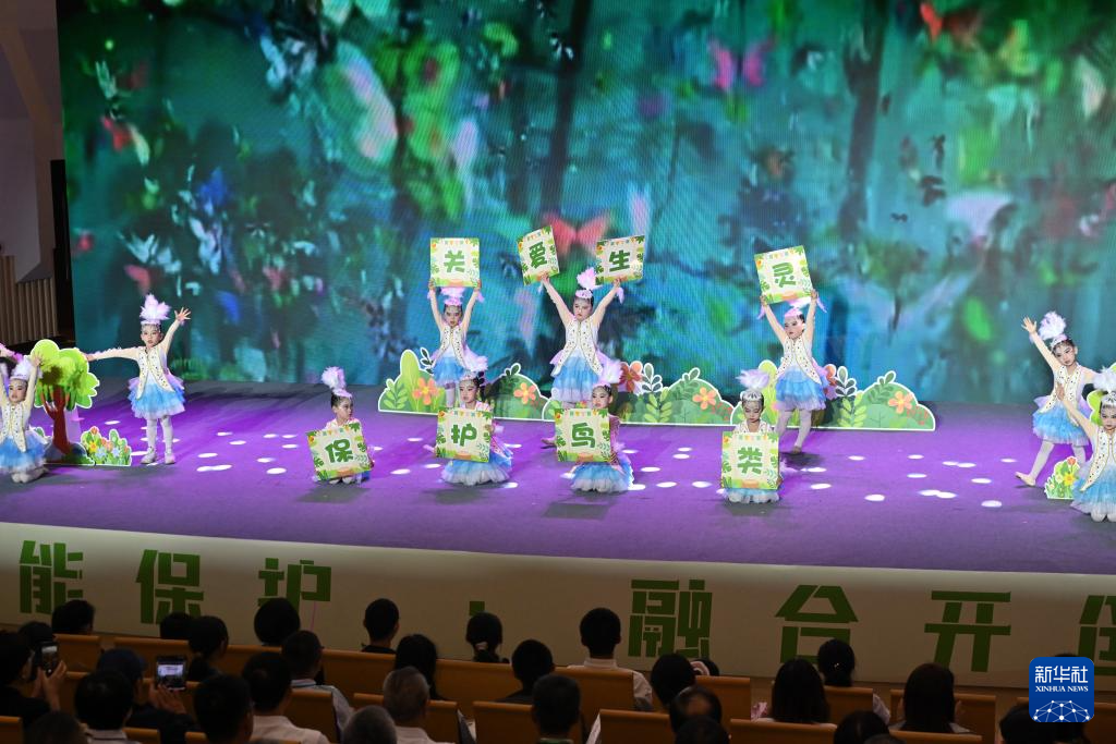 10月26日,小朋友在2024全国爱鸟周自然笔记总结暨福建省首届野生动物文化交流活动启动仪式上表演。新华社记者 姜克红 摄