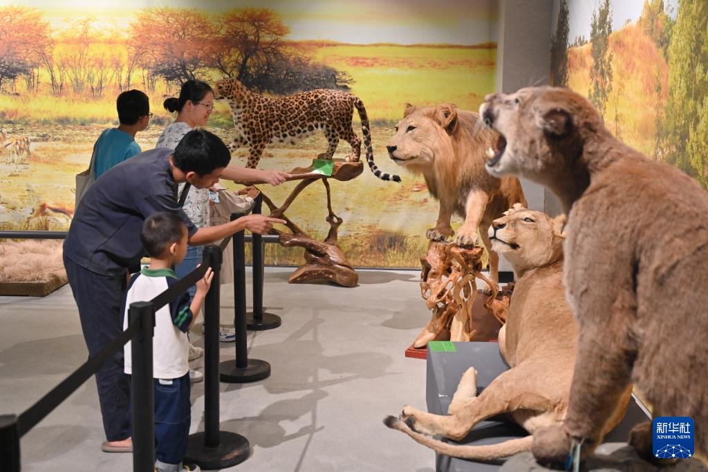 10月26日,在2024全国爱鸟周自然笔记总结暨福建省首届野生动物文化交流活动上举办的野生动物标本展吸引参观者驻足。新华社记者 姜克红 摄
