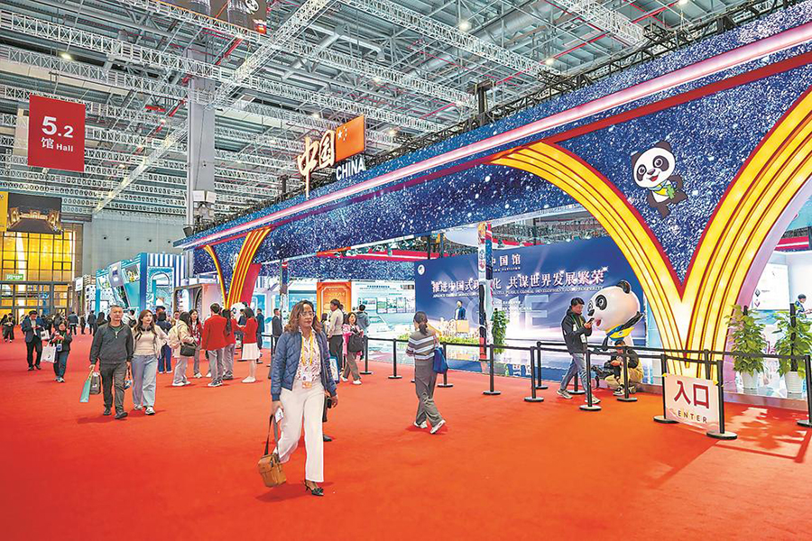 今年的进博会中国馆以“推进中国式现代化,共谋世界发展繁荣”为主题,集中展示中国经济社会发展取得的历史性成就。记者 施辰静 摄