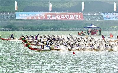 8日,2024年中国龙舟公开赛总决赛暨“长富杯”大武夷环闽江龙舟邀请赛在闽江延平段开赛。本次赛事由中国龙舟协会、福建省体育局、南平市人民政府主办,福建省社会体育指导中心、福建省龙舟协会、南平市体育局、延平区人民政府承办。比赛设专业组和大众组,来自山东、吉林、广东、广西、湖南、四川、重庆等地的700余名运动员组成33支龙舟劲旅参加角逐,此次龙舟公开赛持续两天。(林水鑫 程若兰 摄)