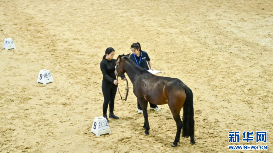 这是考核前,工作人员在验马。新华网发(主办方供图)