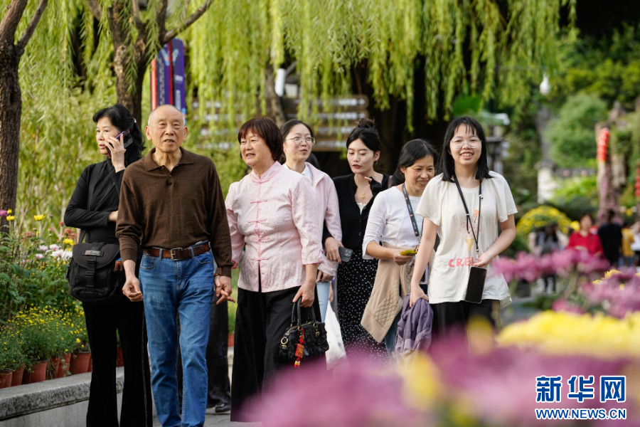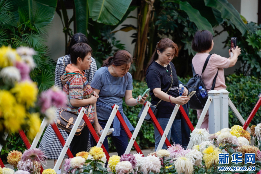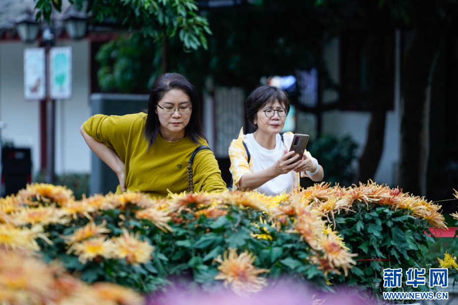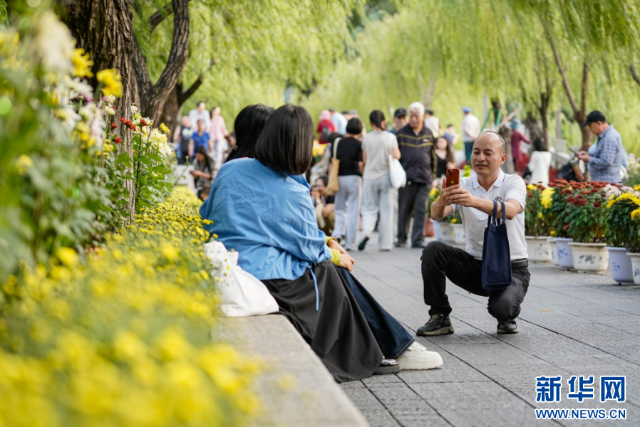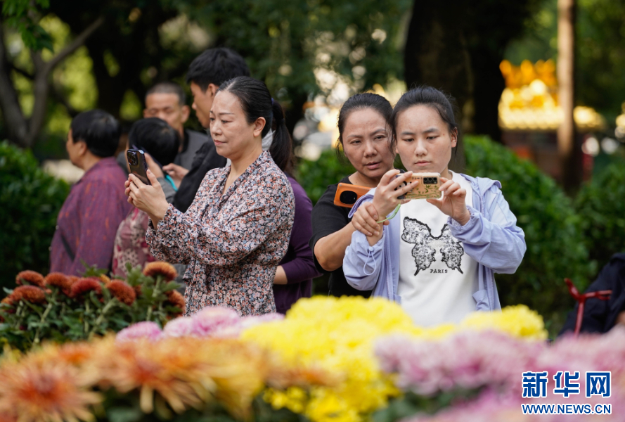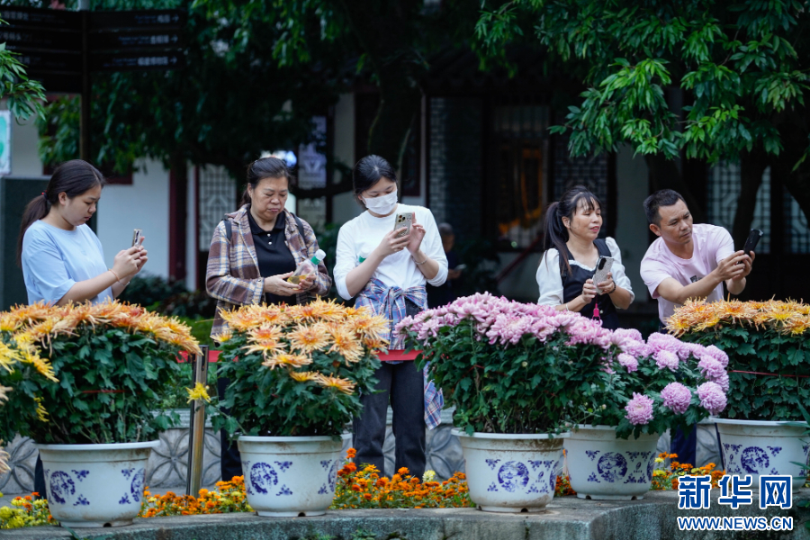 11日午后,福州西湖的游人络绎不绝,许多游客前来“打卡”赏菊。 新华网 蒋巧玲 摄
