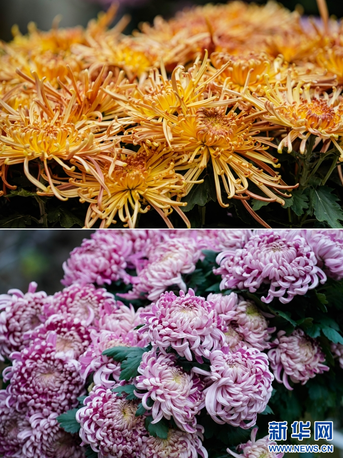 菊花盛放,楚楚动人。 新华网 蒋巧玲 摄