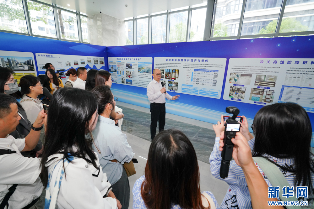 11月12日,东福研究院执行董事、总经理刘泰生向主题调研采访团介绍项目攻关和成果转化情况。新华网 肖和勇 摄