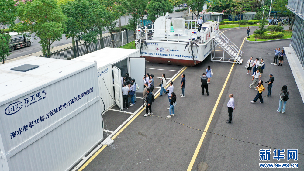 新华网福州11月13日电(刘丰)11月12日,“万千气象看福建·唱响海上牧歌”网络主题活动第一站走进位于福州高新区的东方电气(福建)创新研究院有限公司(简称“东福研究院”)。东福研究院大楼外,写着“东福一号”的装备格外醒目,这是一个海上风电无淡化海水原位直接电解制氢平台。